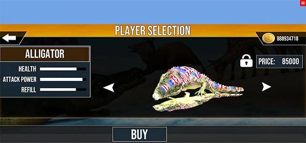 1、下载安装饥饿的动物游戏之后,选择一个模拟动物进入游戏,建议选择鳄鱼;
