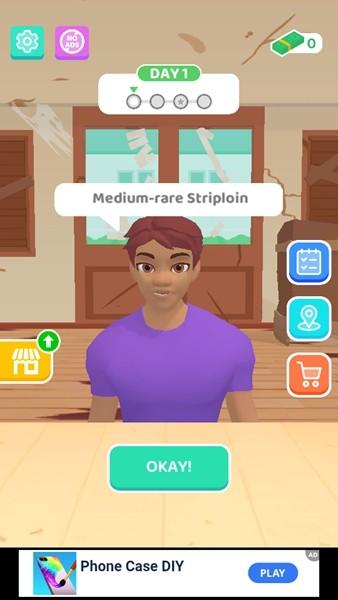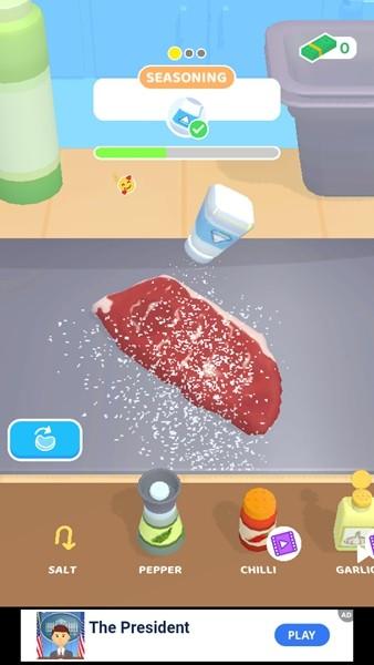 牛排之王(King of Steaks)是一款很好玩的模拟经营游戏,模拟了真实的牛排烤制做法。在这里玩家将在游戏中对牛排进行腌制,切片,烘烤,制作出美味的牛排,随着你厨艺的提高,顾客会越来越喜欢你的牛排,还可以扩大自己的店铺获取更多的收益。