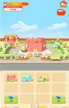 2、完成你的终极梦想,解锁更多空地,合成操作把相同外观的房子合体;