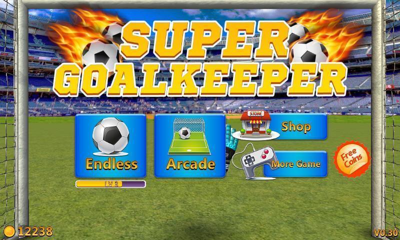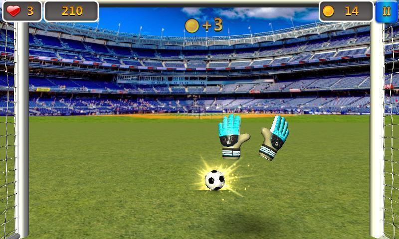 此外游戏还有两种模式,第一种是无尽模式,在这种模式下玩家需要扑出足球来获得经验值和金币,然后通过升级解锁新的道具,之后玩家可以用获得的金币购买更多更炫的足球和特效。第二种模式是经典的街机模式,玩家有三条命,如果有球被踢进球门,玩家就会减少一条生命,同样扑出球也会获得金币,这种模式下守门员玩家需要挑战自己,看最多可以扑出多少足球。每种模式下你连续抱住的球越多,得分和获得的金币就会累加的越多,所以尽量连续抱住踢过来球。