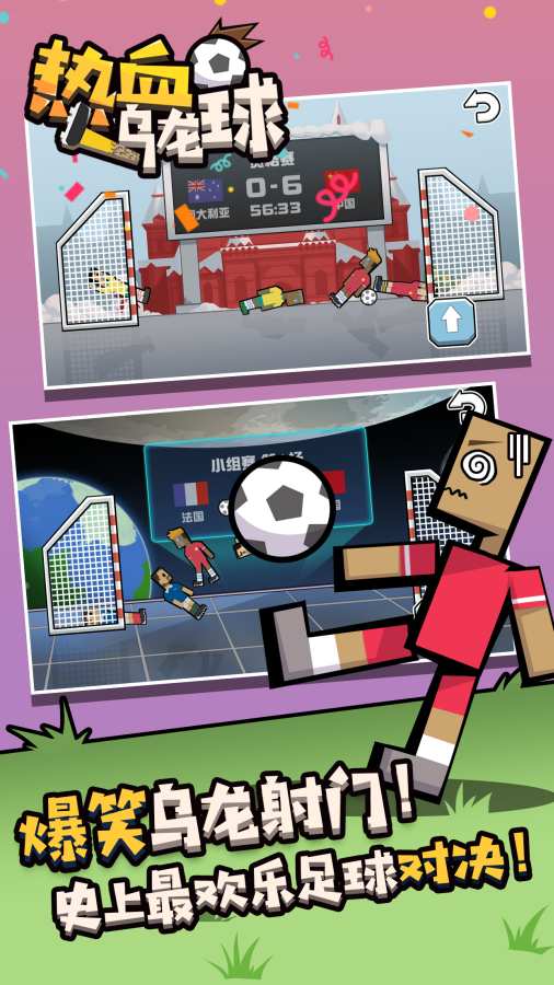 史上最欢乐的足球对战类手游《热血乌龙球》热血来袭,迎合莫斯科世界杯的开启,充满了创意的魔性玩法,独特刺激的在线对决,方块搞笑风的游戏画面,保证让你爱不释手,是今年六月不同错过的足球精品小游戏,赶紧下载吧!
