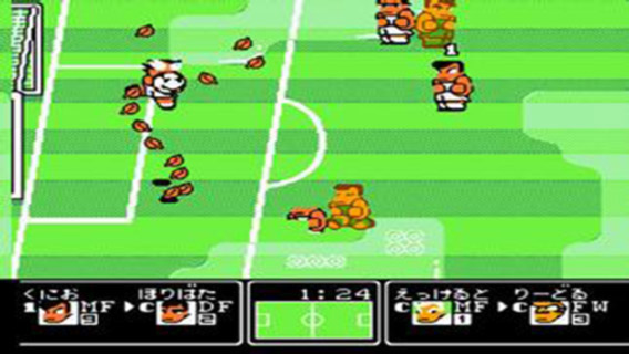 《热血足球》一款经典的红白机游戏,12个日本六人足球精英组成日本热血队,前往挑战世界各地的冠军球队,《热血足球》系列中最经典的一款游戏。世界杯的争夺赛,还有世界杯的密码(000 000 1995)还有点球赛,2,3,4人游戏,可选的国家:热血(日本)意大利,德国,阿根廷,巴西,喀麦隆。