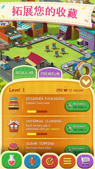 研究新菜,赚很多钱,在这个甜甜圈大亨游戏中成为真正的甜甜圈帝国的拥有者;