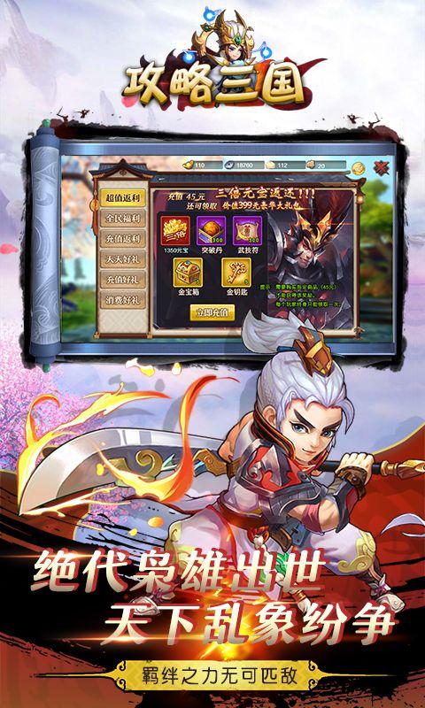 攻略三国里面有超多经典三国武将,完美还原三国剧情剧情,游戏中你可以搜集各种类型的三国武将来战斗,收集喜欢的三国名将,并将人气武将变为卡牌,这是一款非常热血的三国动作扮演游戏,还有各种副本任务挑战,热血厮杀,争霸天下,带你体验热血激情战场,来本站免费下载安装吧!