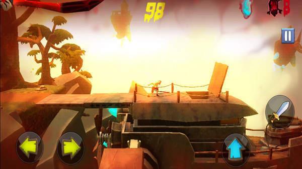 勇士手中拿着各种原始武器,例如木棒,刀,斧头等,在路上清除一切障碍到达终点通关;