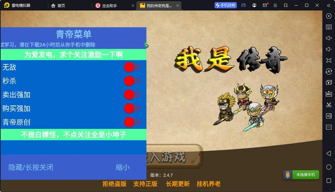 《我的传奇我是传奇》是一款非常好玩的小游戏,玩家可以自由升级自己的武器装备,个性化装扮自己的游戏空间,挑战众多的游戏闯关玩法,体验无限的游戏欢乐。
