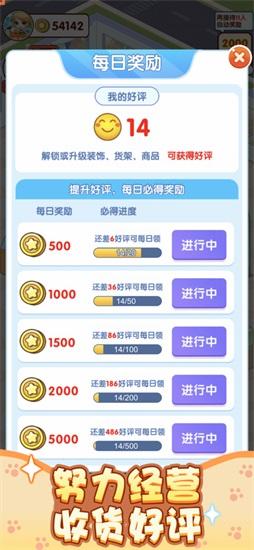 1、玩家可以通过不断升级超市,提高商品品质,增加客流量,实现收益最大化。