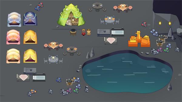 5、千万不要建太多帐篷…建议三个以下,不要升级。后面有木屋直接把帐篷拆了只盖木屋。因为那个建筑物每天早上要清扫,一天时间很短,要看很多次视频,建太多浪费时间收益也不高。我只建了三个木屋,优先升温泉收益高材料简单。