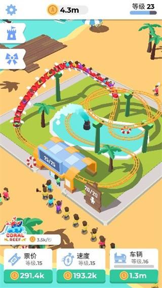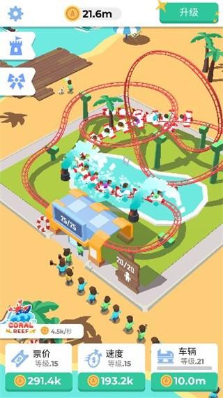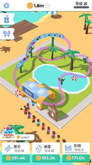 4、还能够尝试升级自己的公园,提升票价,赚取越来越多的金币。