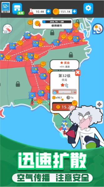野蛮生长模拟器是一款超疯狂的病毒裂变经营游戏。玩家在游戏中将扮演病毒制造者的角色,不断裂变不同类型的病毒,席卷全国,逐步吞噬并占领病毒家园。病毒在游戏中疯狂裂变!作为病毒制造者,发挥智慧感染全球人类,真正毁灭游戏世界。通过模拟经营病毒,让病毒裂变迅速,席卷漂亮国家,让病毒肆虐得更加猛烈!快来试试野蛮生长模拟器吧!