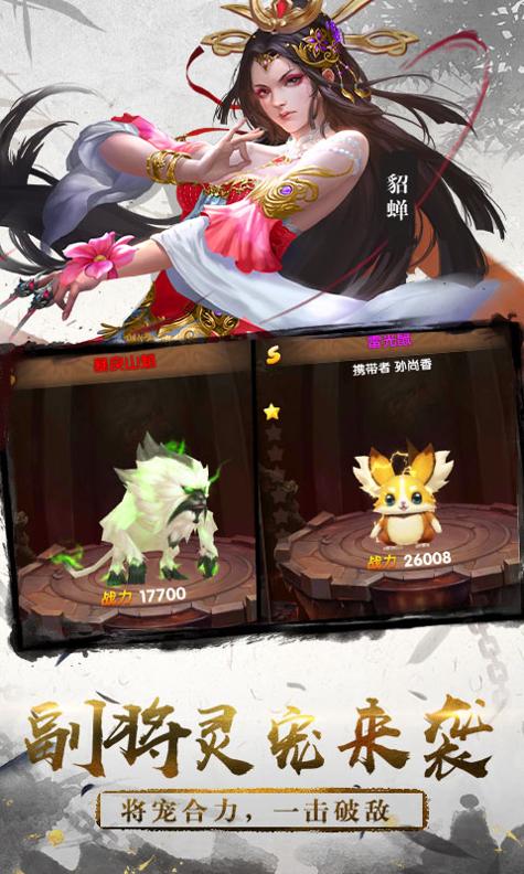 丰富的养成线让主公可轻松挖掘武将潜力让必杀技威力加倍提升,,还可从百余萌宠中招募伙伴携带上阵,运用强大的羁绊之力毁灭敌军!