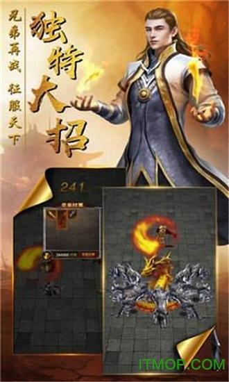 全地形图随意无限定PK,决战爆怪,砍人爆物,顽强刺激性!落霞寻宝、押镖接送、城池角逐、白城争雄、土城PK,骨魔洞练灵兽,更有丰富多彩的PvP游戏玩法,给你一战成名!经典新更新,激情燃起青春年少,干万弟兄,一呼百应,重续霸业!三大职业,互相牵制均衡,互相联合作战,铁三角一样的设置,陪你体会经典的能量。打宝感受,全员送宝,史诗装备、稀有游戏道具。公会、师生、完婚、大红包等多样化社交游戏玩法,兄妹与你同在,你不是一个人在作战