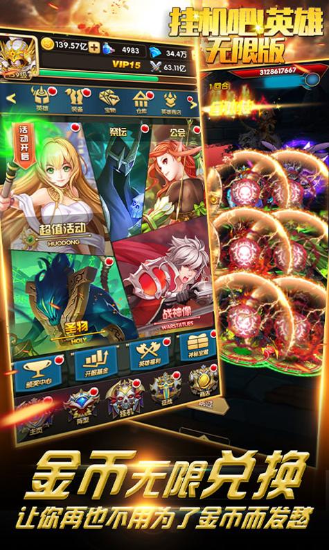 3、挂机吧!英雄热血的PVP竞技之旅,在游戏中合理的搭配阵容进行我们的策略对决!