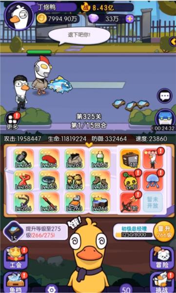 2、自由养成:自由培养鸭子,根据喜好和策略调整装备搭配,享受深度养成的乐趣。