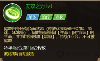 驱散自身所有负面状态(释放优先级低于沉默、昏迷、冰冻等),同时恢复等同[生命上限*15%] 的生命并为自身附加[震慑],持续1回合,不可被驱敬。