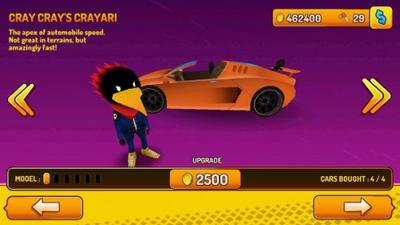 1,精美的卡通游戏画风,超级可爱的动物人物形象,可选择多辆汽车,免费升级改装,大量道具可使用,丰富的关卡可体验。