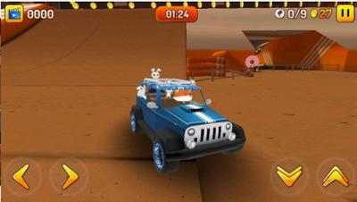 2,加入众多可爱的动物聚集在一起,您将与它们一起开始一段极速的旅程,控制汽车的行驶方向,控制汽车的前进、后退。