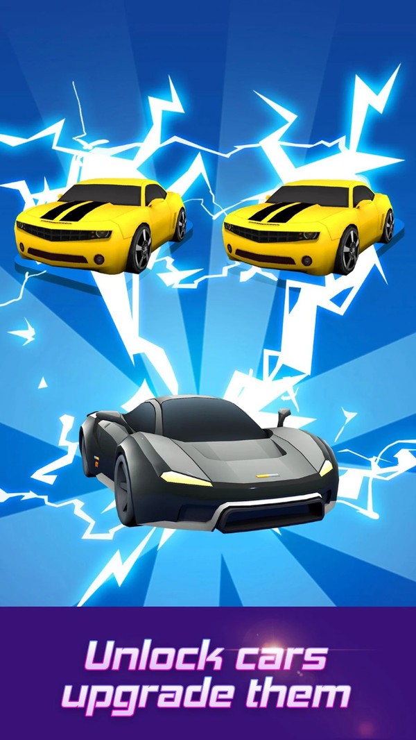 2,然后我就发现了新世界,一直在升级车,升级很简单就把两辆相同等级的车放在一起就升级了,游戏的玩法具备很强的魔性。