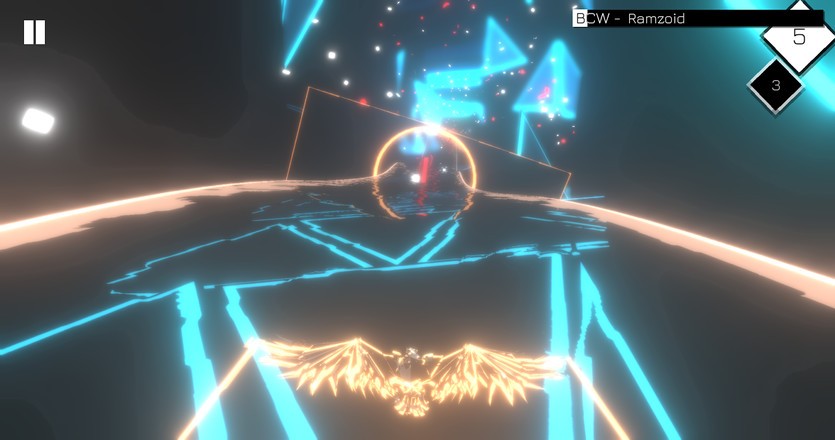 音乐赛车,重点在前面,也就是音乐,没错,这是一款音游。这款游戏有着其他同类游戏都没有的优点-对音乐有着实时反馈,无论是游戏本身搜集到的,还是直接从本地导入的,它都会给你适当的反馈。游戏整体玩起来很舒服,每个操作给出的反馈都很好,赛车的速度随着音乐而变化,比如说这里音乐是没声音的,那么赛车就会减速,以很缓慢的速度来前进。