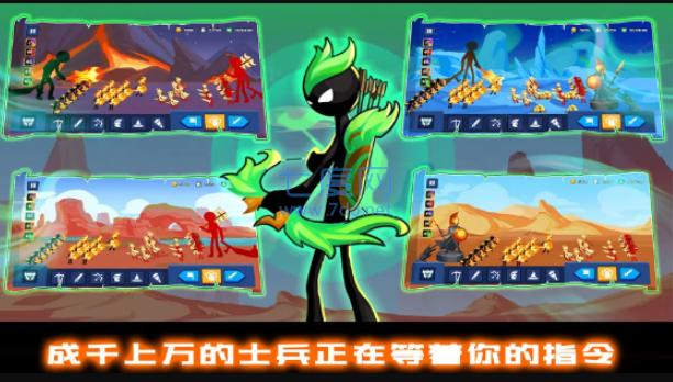 1、玩家进入火柴人世界,解锁枪手、弓箭手、法师等多职业兵种;