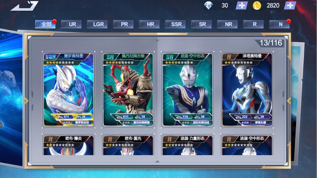 游戏的核心玩法是通过抽卡的形式来获取奥特曼或怪兽卡牌。