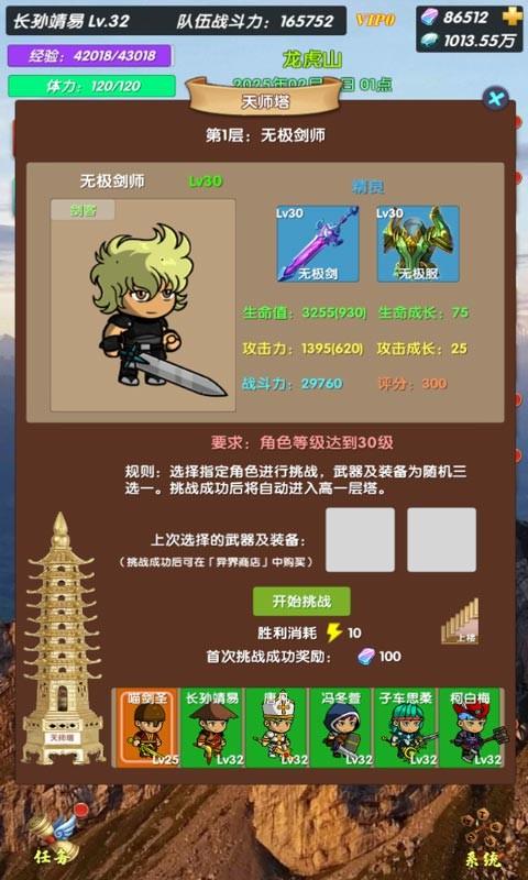 战士,角色选择中血量中攻击成长,装备配备暴击、吸血、招架等攻守兼备技能。