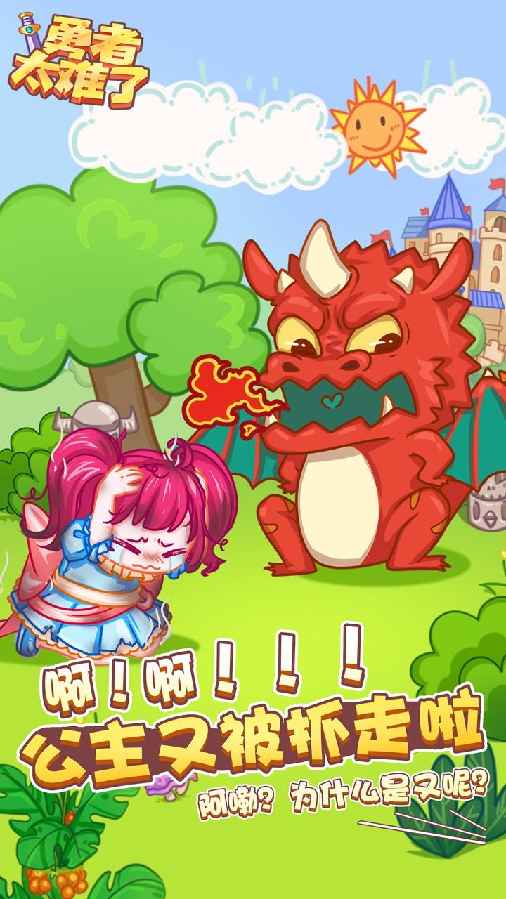 勇者太难了是一款设计出了清新简约特色内容的角色扮演类型作品,你能通过有趣的冒险感受成为勇者的挑战,除此之外还会遇到各种不同的搞笑有趣瞬间,游戏中的操作显得非常的有趣,而且加入了简单且容易上手的内容,玩家将要在其中参与到战斗中并突破不同的关卡,作品中设定制作出了不同的场景和各式各样的武器,而且需要玩家注意的是游戏中的恶龙是非常狡猾的,你的每一步行动都要慎重思考,作品充分的结合了冒险和解谜元素,打造出了充满休闲特色的创意游戏过程,玩家能通过整体画风清新的画面在其中为你带来元气满满的故事背景,作品中的你将要成为勇者并再次前往恶龙巢穴营救又被抓走的公主。