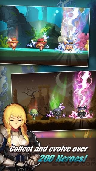 戏中共有300多名英雄,6大职业可供玩家选择,这些像素风格打造的角色都拥有特殊的战斗技能,还可通过达成指定条件,从3星进化到6星,大幅强化外观与技能威力。