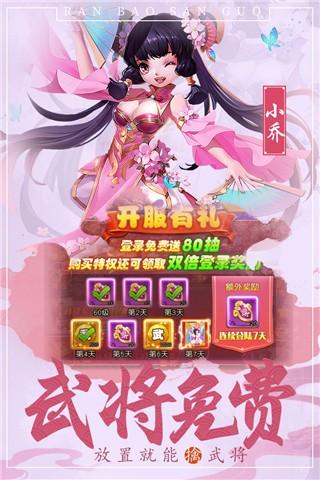 燃爆三国手游是一款设计了充满特色的策略卡牌放置类型手游,首先这款游戏中将会以三国为背景打造而成,游戏中完美的采用了Q版可爱的主题画风,作品中完美生动的还原了风气云涌的乱世,里面的每一位武将都拥有自己的个性和特色技能,游戏中非常的考验玩家的大脑,而且你需要对这些武将进行合理的搭配,设计出了精彩的游戏组合,你要通过排兵布阵在战场上和敌人展开精彩的对决,你要横扫战场并轻松的获得丰富的物质,只有这样你才能不断的扩大自己的势力,通过招募系统你就能获得各种武将,还设计了大量拥有精美外形的红颜女将和文臣谋士等人物,你要打造出属于自己的兵团。