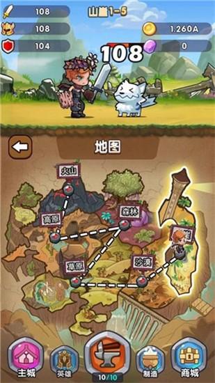 游戏中为你打造出了一目了然的主界面,作品拥有主城、英雄、武器和制造以及商城等不同的选项,设计了大量有趣的场景变幻,拥有火山、森林、沙漠、草原和冰川以及高原等不同的主题。