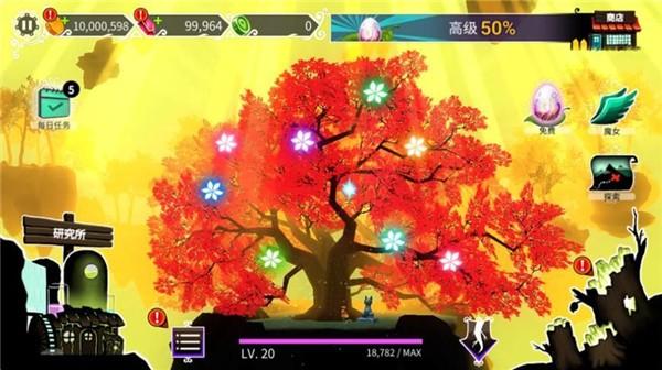 《魔女的森林》中采用了非常有趣且放松的放置类型玩法,通过趣味性的世界树培养系统玩家在冒险过程中还能体验到养成的乐趣,还要将发光的小精灵全部收集起来让他们在这个世界上绽放属于自己的光彩。