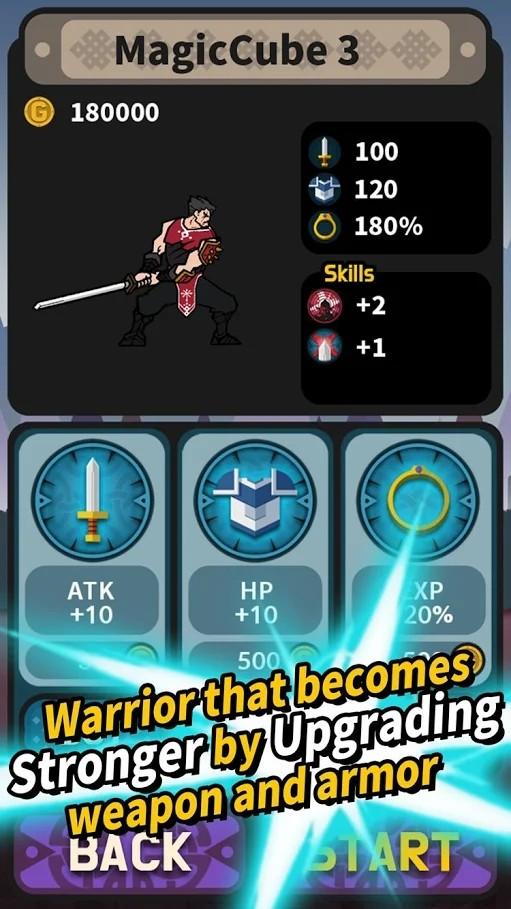 无限决斗游戏中讲述了一个精彩的冒险故事,这部作品中拥有好玩的街机类游戏,游戏在的你需要控制一名勇士进行刺激的冒险和战斗,而且玩法也非常的简单有趣,玩家在挑战中只需要点击屏幕就能让你的角色进行战斗,你要将自己面前的所有敌人全部消灭,只有这样才能获得经验并进行升级,玩家在游戏中还要提升自己的攻击力和各项不同的属性。设计打造出了精彩且让人感兴趣的游戏环节,玩家要控制自己的游戏进行战斗和冒险,除此之外还要将你眼前的敌人全部消灭,这部作品中采用的是简洁的主题画风,拥有画面清晰且精彩的背景,加入了趣味性的玩法和有趣的精彩刺激的操作,整体上看作品中的操作简单且容易上手,而且拥有无限的挑战模式,只要玩家的角色不死就能可以一直玩下去。