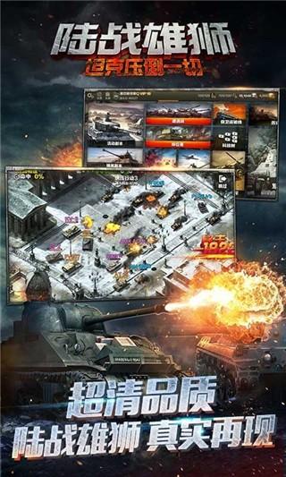 陆战雄狮游戏下载是一款以坦克军团为主题的作品,设计了经典的对战手游,而且游戏中也采用了全高清的画质制作而成,完美的重现了百余款二战经典的坦克,在这里你将能通过通过战役体验到闪击波兰、沙漠风暴等一系列经典的二战玩法,你还可以使用火炮、爆破和正面装甲在游戏中打造出了强大装甲和钢材五种不同的材料升级改造自己的坦克,《陆战雄狮》中融合了大量的策略竞技等玩法,并以精美的游戏画质为基础为你展现出了震撼的打击效果和全方位的音乐特效,玩家在游戏中能体验到最为真实的二战战场,你将能亲临二战历史体验这硝烟弥漫且炮火肆虐的战争世界,游戏中设计了上百款坦克可供玩家挑选,比如虎式重型坦克、中型坦克等,这些坦克都能供玩家在画面中任意的驾驭,而且每辆坦克的性能和作战方式都不相同,你能亲临战场体验这充满趣味性的无限魅力。