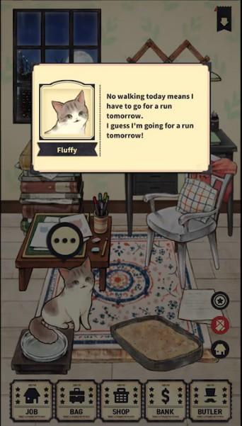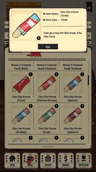 玩家可以根据猫咪的性格作出不同的互动,猫猫的食物等玩家可以通过打工的方式得到。
