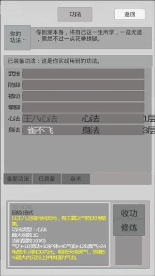 是一款文字放置游戏,玩家扮演一个误入异界的修真者,从战五渣开始,打装备,修炼功法。