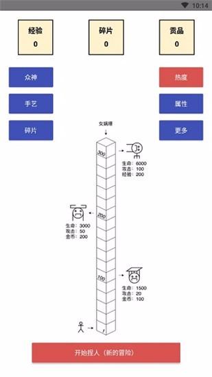 女娲捏人游戏下载是一部有趣且景点的角色扮演类型游戏,这部作品中将会和玩家熟悉的Roguelike玩法融为一体,结合出了简洁清新的游戏界面,还在很大程度上丰富了这部游戏中的有趣剧情内容并在其中为玩家带来了不一样的游戏体验感,同时玩家将要扮演女娲的角色,并自由的选择角色,你要让自己具备强大的攀爬塔台取胜的技能,而且在整个的挑战过程中每座塔都拥有极为强大的魔法压制,玩家要运用自己的智慧在游戏中为自己的角色制造出不同的角色属性,只有这样才能提高自己角色的能力并更好的突破不同关卡的限制,另外在女娲攀登过程中还能有机会掉落不同的贡品,并提高自己的遇神概率。