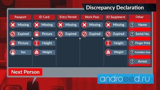 这部作品打造了丰富的情节,几乎你在游戏中所遇到的每个角色都拥有自己独特的故事,无论玩家是公正行事还是个人利益一切都会导致不同的结果,随着游戏过程的进展,国家也会发布各种全新的公告,这将会对玩家的工作和审查产生一定的影响,也会发布越来越多的公告,