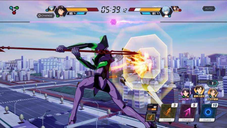 突破天际:属于全屏攻击技能,EVA会跳起来将刺枪插入地面,产生巨大AT立场,对全屏敌人造成伤害。