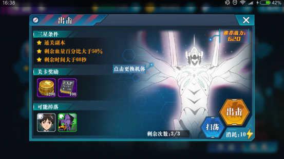 每个关卡均设定有三星条件评级,通关关卡可获得一颗星,剩余血量若高于该关卡设定则可获得一颗星,剩余时间大于关卡设定则可获得一颗星关卡挑战后获得3颗星则解锁该关卡的扫荡功能,可以通过扫荡的方式快速通关获得奖励。挑战关卡或扫荡关卡都需要消耗体力,参与个别任务可获得体力恢复,每间隔一段时间也将恢复若干体力。