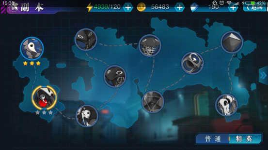 在副本界面右下角可切换剧情本至精英本,精英本同剧情本有着异曲同工之妙,相对剧情本精英本的关卡更少,难度更高,奖励更加丰厚,但每个精英关卡都设定有每日挑战次数,同样根据评分可以获得三颗星,同样消耗体力可以进行挑战或者扫荡。