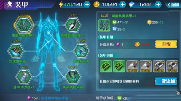 装备进阶是游戏最快捷提升机体战斗力的方式,装甲进阶材料只能通过普通副本获得。在初期,部分玩家为了快速获取经验胡乱扫荡副本刷出很多低阶材料,这些低阶材料在装甲进阶到更高等级时就无法使用,之后才发现机体装甲升级需要大量的材料。所以,玩家要精打细算,根据装甲进阶需要进行普通副本扫荡,千万不要盲目浪费电力哦!