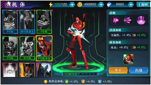 机体系统是游戏的核心养成系统,玩家可以通过完成游戏挑战来收集机体碎片对机体进行解锁以及提升机体能力;