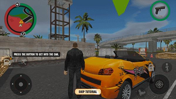 5、消灭敌人后坐上出租车,点击右下角的按钮进入汽车。