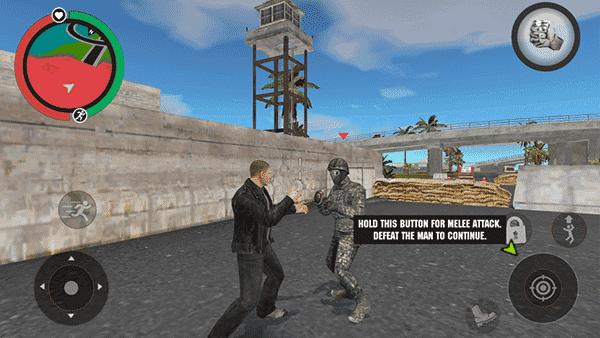 4、敌人使用枪械来攻击,徒手攻击他肯定是不行,点击右上角的“拳头”更换武器攻击。