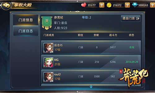 在掌教大殿内,可查看门派成员信息,并进行管理。