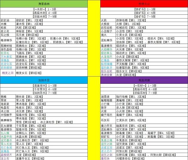 1、冒险的地图目前设定的比较简单,看地图名字和场景就知道去什么地方打什么材料啦!