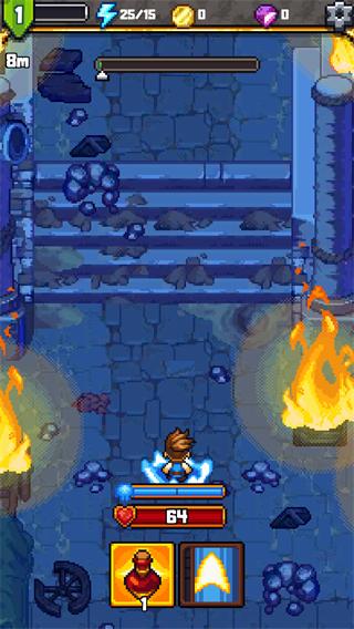 1、玩法方面其实还是比较简单的,左侧防御可以抵挡敌人的攻击,右侧攻击用来攻击前方的敌人,长按为蓄力攻击,会发射一条弧线技能,下方一列为技能道具栏,解锁的技能,各种药剂补给都在这里。