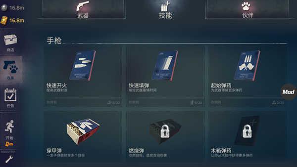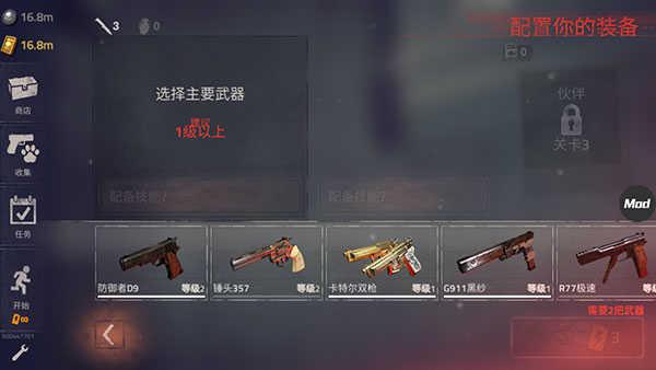 3、发展期间避免解锁任何东西,所以打完第8关解锁狗后就停下来反复刷第一关搞发展,在D98-满级、双筒8-满级、强盗9-满级、M32散弹8-12级、民兵HK-A58-12级前少解锁其它武器。(银币不够的话优先升M32、民兵HK-5A)。