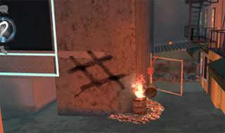 5、点燃面包后可以看到油桶右侧的黄色光圈,走过去后面包会自动掉落,等里面的人出来后就可以完成任务了。
