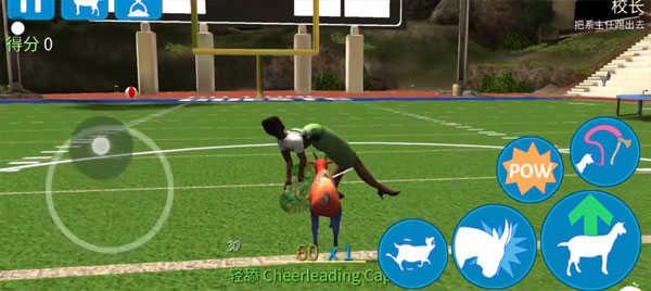 1、场景方面选择学校这张地图,将普通山羊切换成蛛山羊或反重力羊,然后起飞寻找橄榄球场。